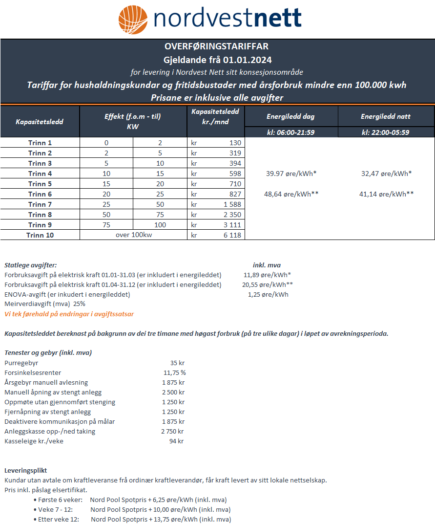 Nordvest Nett har ansvar for å bidra til ei trygg og god strømforsyning for våre kunder, og legge til rette for utvikling av næringslivet i området. Vi er nå inne i en tid med mer elektrifisering, samtidig som strømnettet skal være rustet for stadig mer ekstremvær. Dette betyr at vi må foreta store investeringer i nettet. Vi vil gjøre dette så effektivt så mulig for å holde nettleien lavest mulig for våre kunder.